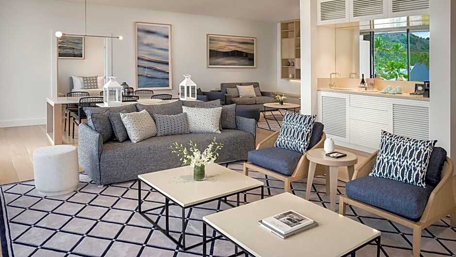 This one-bedroom suite has views of the Hayman pool and Coral Sea from your private double balcony. Featuring a separate spacious lounge area, the suite comes with a separate bath and shower and a dressing room.